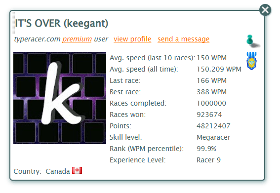 KeeganT’s Epic Journey to 1,000,000 TypeRacer Races