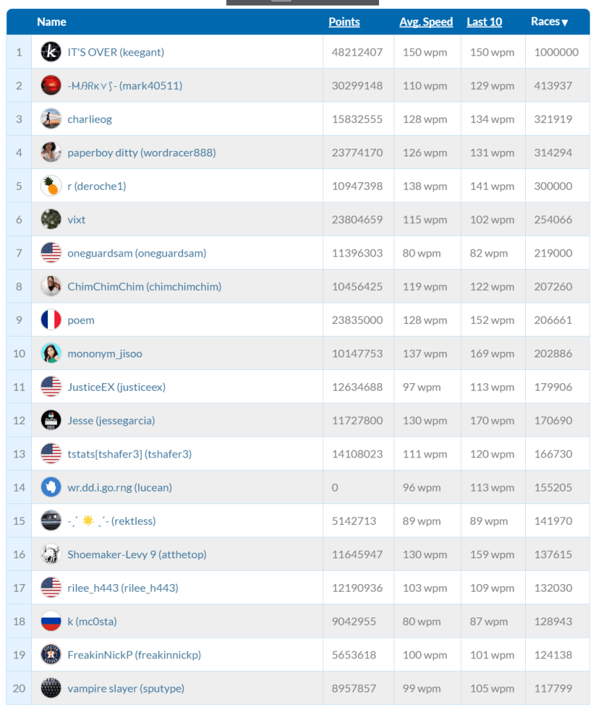 We are truly grateful for everything you’ve done – for the records you’ve set and the records you’ve kept. Your impact on the TypeRacer community is immeasurable. Here’s to you, Keegan, for all the incredible work, and hopefully for all the more races to come. That is if your hands haven’t fallen off. 😅.